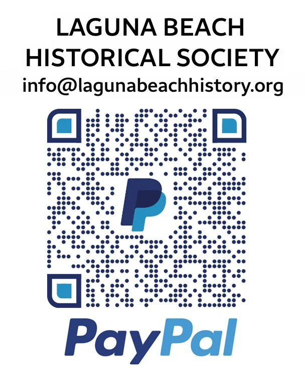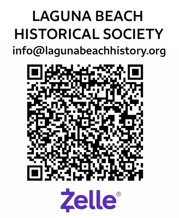 ZELLE: Donate via your bank to save fees. Scan the QR code, or log in to your bank and find to pay to info@LagunaBeachHistory.org. Use the memo box to give us your email & USPS address for our newsletter.